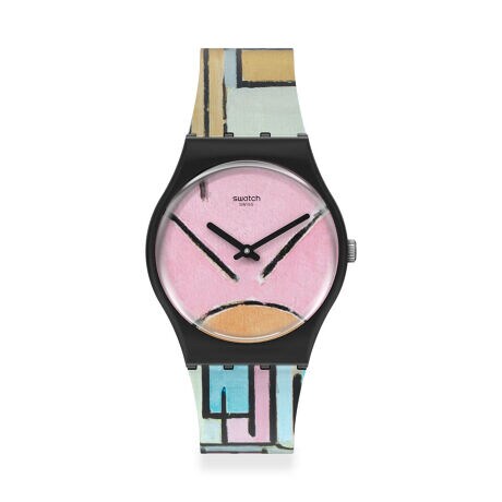 COMPOSITION IN OVAL WITH COLOR PLANES 1 BY PIET MONDRIAN, THE WATCH は、Mondrianのよく知られる独特のコンポジションに柔らかいパステルカラーを配したデザインが特徴です。