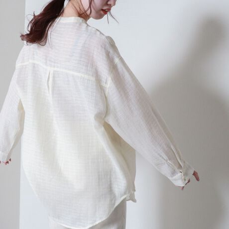 チェックシャツだけど程よい透け感でこなれ感も◎