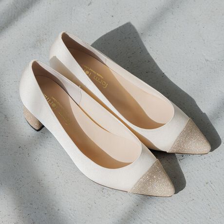 結婚式やセレモニーシーンは、長時間立つことも多いので、1.安定感のあるヒール 2.高すぎないヒールがとっても重宝されます。