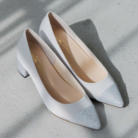 結婚式やセレモニーシーンは、長時間立つことも多いので、1.安定感のあるヒール 2.高すぎないヒールがとっても重宝されます。