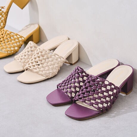 ワイドなスクエアトゥでモード感があり、足元をスタイリッシュに仕上げてくれるミュールサンダル。