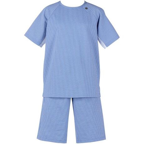 【キッズ用パジャマ(ユニセックス)】トップス袖丈:半袖(3分袖)・ボトム脇丈:半ズボン(5分丈)・かぶりタイプ[睡眠科学 KIDS【さらっと快適パジャマ】]●暑さやムレが気になるお子さまに吸汗速乾性のよい生地と子どもの寝相を考えたパターン設計 汗をかきやすい脇下には通気性のよいメッシュ素材を使用しムレにくいさらっと快適設計 トップスの裾にスリットを入れ、裾が前後に広がりやすくし、窮屈感が少ない着ごこち●着衣のみだれによるおなかの寒さ対策など、ここちよい眠りのための工夫がいっぱい ボトムの股上を深くすることで、おなかがすっぽり隠れる設計に加え、おなかの寒さが気になる4・6サイズはボタンで前ボトムを留められる仕様 足口から股までを一枚のパターンにしているので、足を広げやすく、動きやすい●首もとの飾り釦(ボタン)がポイント●本体に、凹凸のあるニットサッカー素材を使用(綿混ニットサッカー素材) ニットサッカー生地は伸縮性があり、肌への接触面積が少ない 吸汗速乾素材で汗をすばやく吸い、すばやく乾くさらっと快適素材・肌側に名前が記入できるネーム付き・ボトムの前肌側にネームを付けることで、はく時に前後の目安になりやすい・ウエストゴム取り替え口あり【サイズ詳細】4:着丈45.0cm 裄丈27.0cm ボトム脇丈37.0cm 裾まわり39.5cm 股下(レングス)18.0cm ウエスト46.0cm ヒップ76.0cm6:着丈49.0cm 裄丈30.5cm ボトム脇丈45.0cm 裾まわり43.0cm 股下(レングス)24.0cm ウエスト48.0cm ヒップ83.0cm8:着丈57.0cm 裄丈35.0cm ボトム脇丈48.5cm 裾まわり47.5cm 股下(レングス)26.0cm ウエスト52.0cm ヒップ90.0cm10:着丈63.5cm 裄丈38.5cm ボトム脇丈59.0cm 裾まわり50.5cm 股下(レングス)33.0cm ウエスト55.0cm ヒップ100.0cm12:着丈68.0cm 裄丈41.0cm ボトム脇丈63.0cm 裾まわり53.0cm 股下(レングス)36.0cm ウエスト59.0cm ヒップ105.5cm12B:着丈73.0cm 裄丈43.5cm ボトム脇丈65.0cm 裾まわり55.5cm 股下(レングス)38.0cm ウエス