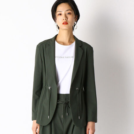 スポーティーな素材でジャケットを仕立てることでアクティブな印象です。