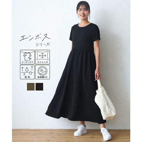 人気のエンボスシリーズ半袖ギャザーワンピースに新色登場!