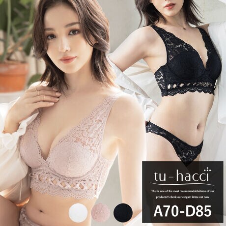 アンダーの装飾的なクロスデザインが目を引く、ドレッシーな脇高ブラ。