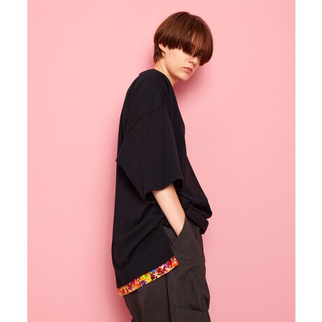 サイドにスリットが入り、後ろ身頃の裾裏にはオリジナルの花柄生地を使用したディテールにもこだわったアイテムです。