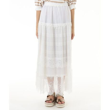 メッシュやレースを組み合わせた表情豊かな生地を贅沢に使用した、マキシ丈スカート。