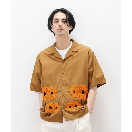 オリジナリティ溢れる刺繍使いがインパクト大なオープンカラーの半袖シャツ。