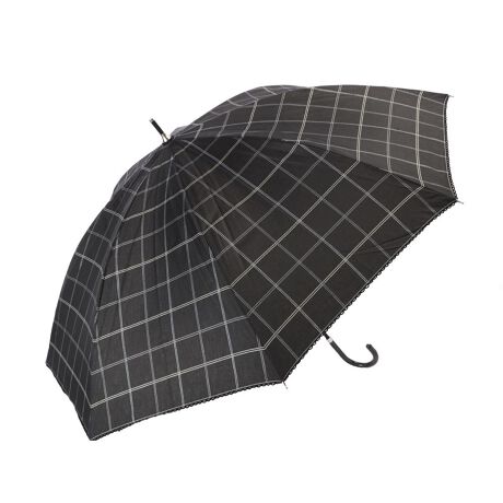 傘生地の内側がシルバーコーティングされており、紫外線遮蔽率95%以上で、上品なデザインの晴雨兼用の長傘です。持ち手は女性らしい細いフォルムと革風素材でできています。