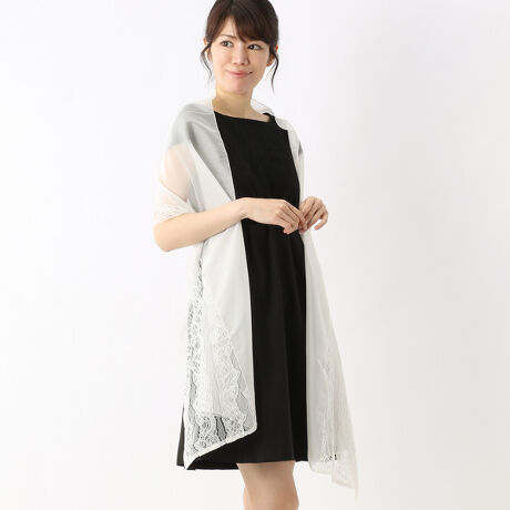 [型番:5533802]シンプルな生地に端のレースが派手すぎない華やかさをプラス。長さ約200センチと大判で、冷房対策・日焼け対策にも。結婚式などのフォーマルな場所で、軽くサラッと羽織れます。ストール/結婚式/羽織/ミセス