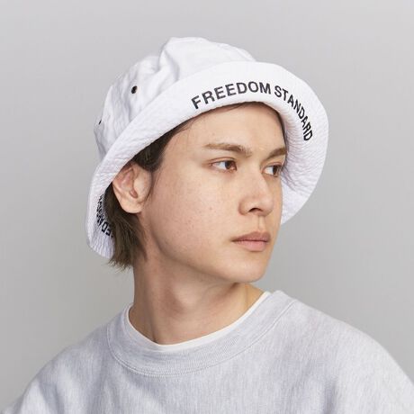 どこか90年代を感じさせるフォルムのベーシックなツイルバケットハットに、BEAUTY&YOUTHらしいクリーンなプリントをツバ裏に配しました。