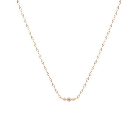ダイヤモンドがきらめくピンクゴールドネックレス。デコルテラインでダイヤモンドがさりげなく輝くので、優しげな雰囲気と女性らしい魅力を引き立ててくれそうです。どんなコーディネートにも合わせやすいシンプルなデザインなので、ご自分へのご褒美や大切な方への贈り物におすすめです。ダイヤモンドは4月の誕生石です。石言葉は「清浄無垢」「永遠の愛」。心身を浄化し周囲にある邪気を払ってくれる力があるとされています。最大の幸福を呼び込むサポートとなってくれそうです。【ATTENTION】※熱や紫外線、湿度の影響により変色や変質、劣化の恐れがございます。直射日光の当たらない場所での保管をお願いいたします。ご使用後は柔らかな布で汚れを拭き取ってから保管してください。※天然石は素材の特性により、色や形、風合いなどが画像と多少異なる場合がございます。また、多少のインクルージョンやクラックがある場合がございます。予めご了承ください。※強い力を加えると変形の原因になりますのでご注意ください。