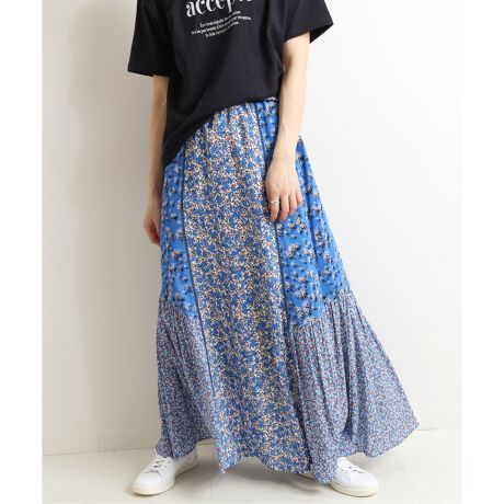 数種類の花柄を合わせた贅沢なロングスカート。