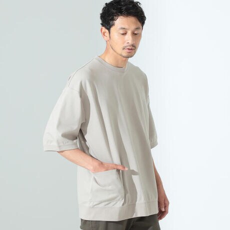脇の下側にパッチポケット付けたデザインがポイントのTシャツ。袖と裾にリブを配してスウェットの要素もプラス。こだわりのデザインコーディネートにアクセントをもたらします。
