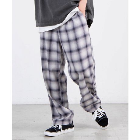 太すぎず、リラックス感のあるオンブレチェック柄のルーズイージーパンツ。