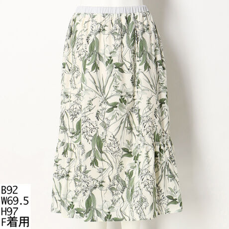 【洗える】【ウエストゴム】フラワープリント ギャザースカート