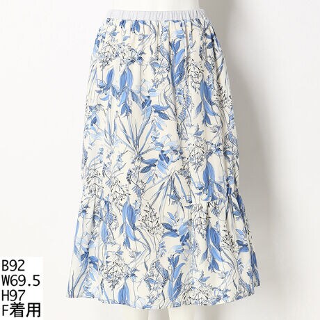 【洗える】【ウエストゴム】フラワープリント ギャザースカート