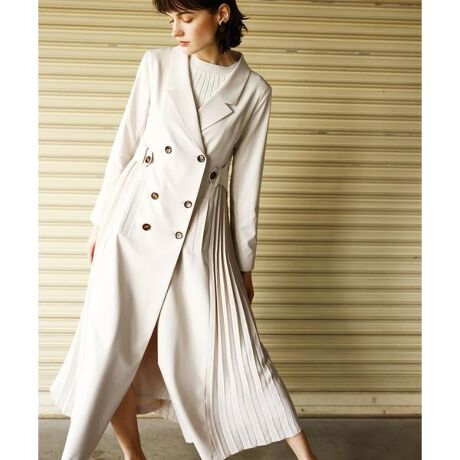 ◇REDYAZEL(レディアゼル)のバックベルトサイドプリーツテーラーコートインナーを選ばず合わせやすいデザインです。やや広めについた襟は今年らしく抜け感UP。サイドのプリーツやバックのベルトなど細かい部分まで可愛いアイテムです。
