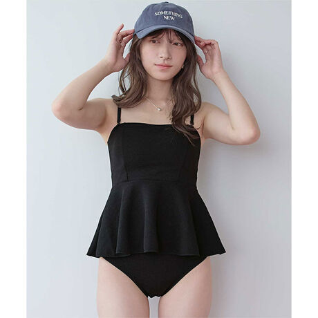 ・表面変化のある素材を使用したペプラムタイプのフレアビキニ。