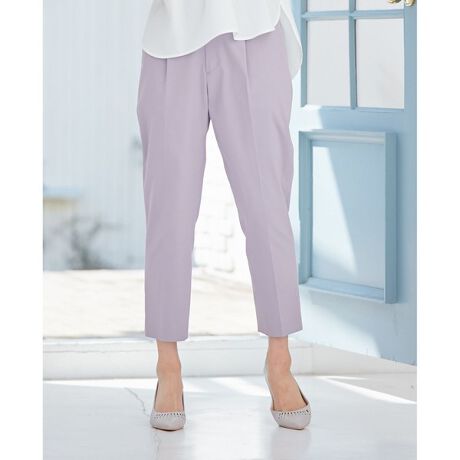 any SiS定番人気の美シルエットパンツ■デザインフロントワンタックでセンタープレスが入っており、きちんとした印象のシルエットになっています。後ろウエスト部分はゴム仕様で、股上を深めにしているので穿き心地も快適です。どんなスタイルにも合わせやすいany SiS定番のテーパードパンツです。■素材綿・ポリエステル・ポリウレタンの高密度タイプツイル素材を使用しています。オフホワイトは透けにくくするために他のカラーとは組織を変え、少し肉厚な素材にしています。ポイント1シルエットと穿き心地しっかりとした肉感なので綺麗なシルエットを表現できます。素材の仕上げに軽いエアタンブラー加工をしているので風合いが柔らかく、しなやかな穿き心地に。ポイント2UVケア高密度の織物であることでUVケアの機能も備わっており、紫外線の肌への透過率を下げる効果があります。ポイント3接触冷感紡績の段階で冷感剤を糸に練り込んでおり、着用の際に肌当たりがひんやりと感じられ夏の不快感を軽減してくれます。ポイント4撥水性生地表面に撥水剤による後加工を施しており、水に対する撥水性が付与されています。そのため水をはじきやすく、雨の日などの水染みを軽減してくれるのも嬉しいポイントです。■同素材アイテムこちらの商品は別カラーの展開もございます。詳しくは下記ページをご覧くださいクールタッチミラクルガード テーパード パンツ(PRWPNM0401)(ピンク・オフホワイト)※こちらのアイテムはカラーにより組成が異なります。※屋外での撮影画像は、光の加減で色味が違って見える場合がございます。商品の色味は、スタジオ撮影の画像をご参照ください。※商品画像はサンプルを使用しているため、色味やサイズ等の仕様に変更がある場合がございますので、予めご了承ください。