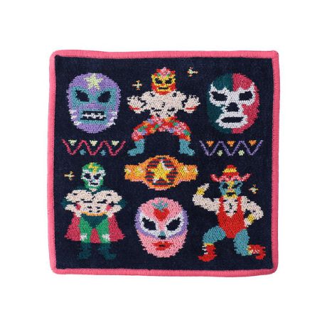 3人の覆面レスラーがカッコよくポーズを決めた「ラブラリーファイター」シリーズのハンカチ。カラフルなマスクやコスチュームに加え、中央にはチャンピオンベルトをデザインしました。思わず目を引くユーモアたっぷりの1枚はプレゼントにもぴったりです。
