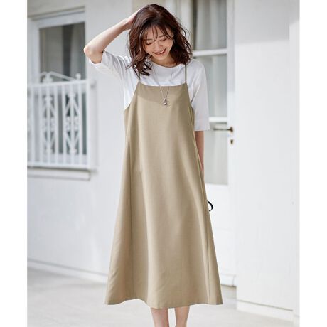 Jプレスの【洗える】キャミワンピース+カットソー ツインセット。