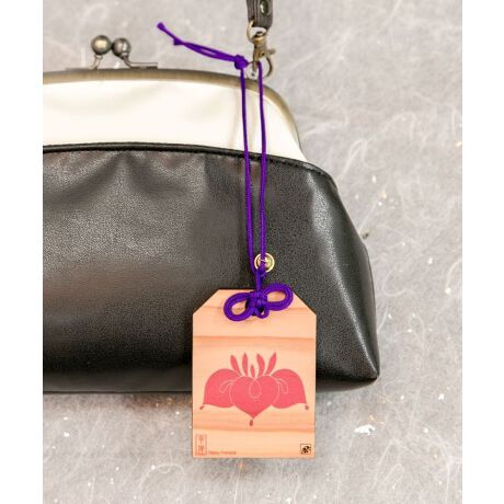 お守り袋の形をした杉の木のお守り札。