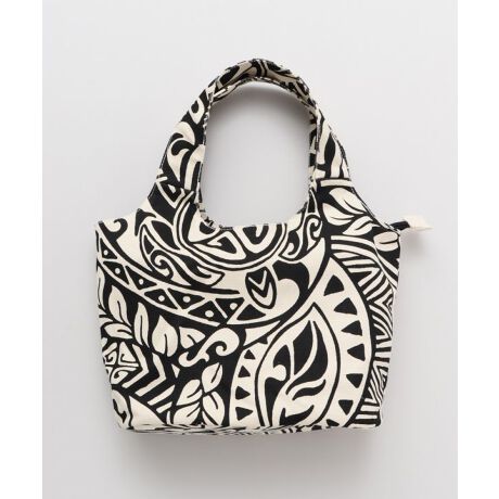 ポリネシア地方に古くから伝わるトライバル柄をイメージしたプリント。キャンバス素材でしっかりとした生地感のミニバッグ。ちょっとしたお出かけやお散歩など、デイリーに使いやすい便利なサイズ感です。
