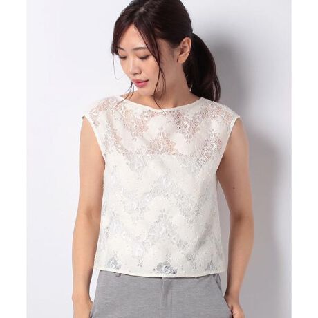 人目を引く華やかなレーストップスは、さり気なくジグザグボーダーデザインに。透け感を持たせているからコーディネートが軽やかにキマります。ややクロップド丈でスタイルバランスが取りやすいのもうれしい。