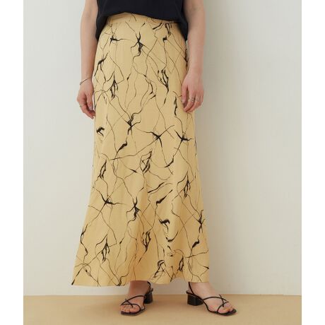 【絵画のように抽象的なプリントが魅力。やわらかなイエロートーンが街に映えるマーメイドスカート】