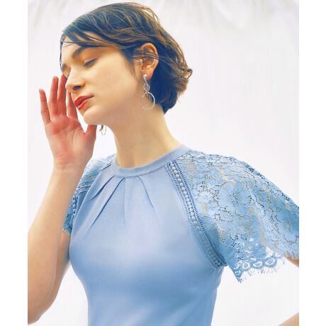 ニットならではの柔らかな女らしさと肌をきれいに映えさせるショルダーレースで
