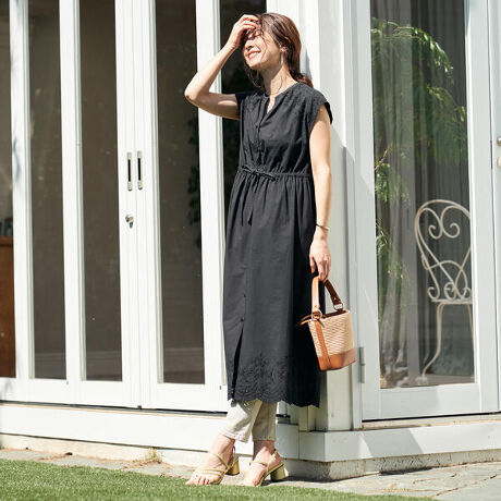 爽やかなスカラ刺繍デザインと肌触りの良いコットンで仕立たワンピース。ナチュラルな風合いでシーズンムード高まる一品です。