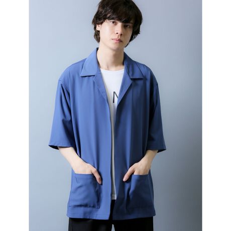 デザイン性の高いボタンレスのシャツジャケットです。5分袖なので初夏から秋口までロングシーズン着まわし可能です。