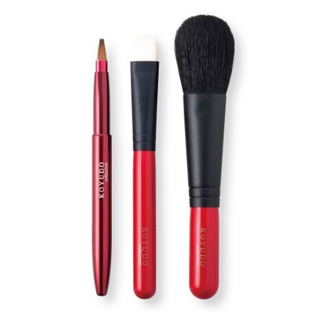 大人のメイクを演出する、赤と黒の配色のメイクブラシセット。全長が短いため化粧ポーチに収納できるサイズです。