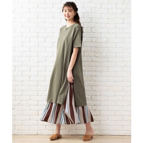 そのままワンピースとして着用するのはもちろん,サイドのファスナーからボトムスをのぞかせればメリハリのあるこなれコーデが完成します◎