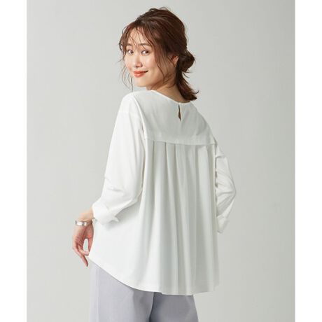 2021SS調温&抗菌機能で快適な着心地!一枚で決まるバックディティールトップス■デザインバックデザインがポイントのシャツライクカットソー。背中部分にたっぷりタックをとり分量感を出し、前はすっきりと見えるデザイン。前後のシルエットにコントラストがついているため、シンプルだけど着るだけでサマになる一枚です。袖口にはスリットをあしらい折り返しできる仕様にしているのもポイントです。■素材ハイゲージで編み立てた肌触りの良いコットン100%のスムースカットソー素材。薄手ですがハイゲージで編み立てているので透けづらくカットソーならではの程よいストレッチ性もある着心地よい素材です。ご家庭でお洗濯いただけるイージーケア素材。■機能皮膚の温度により、水分(汗など)の蒸発速度を調節する機能を付与しています。皮膚の温度が高いときは水分を吸水速乾し、肌のベタつきを軽減します。逆に皮膚の温度が低いときは湿度を保つことで快適な温度に保ちます。春夏は、朝晩の冷え込みや冷房による体の冷え軽減と日中の暑さ対策を両立させることができます。秋冬もインナーとしてご使用いただくと、外出時や電車の中、家の中等どんな場所でも快適に過ごすためのサポート役として活躍します。※感じ方には個人差がございます。また、抗菌防臭の機能も付与していますので、菌の繁殖を抑制し、臭いの発生を軽減します。※画像はサンプルを使用しているため、実際にお届けする商品と仕様が異なります。