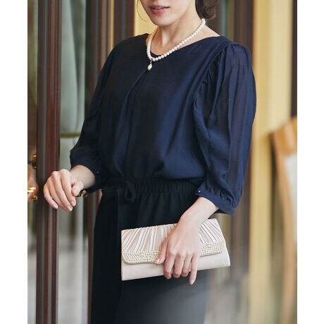 透け感のあるバルーンスリーブとインパーテッドタックがポイントの抜け感のあるドレッシーブラウス。