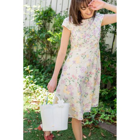 防汚加工と消臭効果の機能がついた刺繍ファブリックのドレス。初夏に爽やかに映えるカラーをセレクトいたしました。オーガンジーのような透け感がありながらも、デイリーにご着用いただける、とても柔らかな素材です。ひらりと揺れるシルエットがとても美しく、より女性らしさを感じさせてくれます。雨の多いこの時期、外出時に雨の跳ねを気にせずご着用いただけます。
