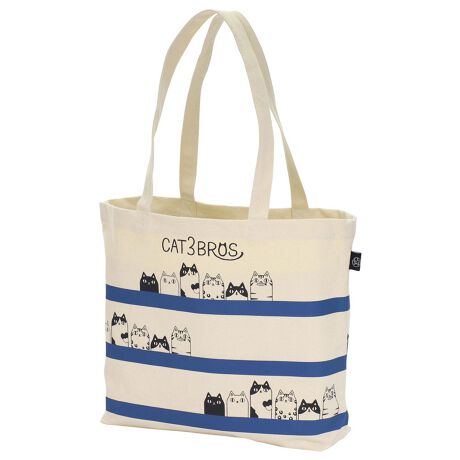 大人気の猫3兄弟の「横長トートバック」が新登場!A4サイズ収納OKで、マチもたっぷり!スリムタイプのランチボックスなら入ってしまう、使い勝手の良さが自慢♪持ち手も長くて肩掛けが可能なので、荷物が重たくなっても大丈夫。バッグ内側には、小物の収納に便利なオープンポケットも1つ装備。しっかりとしたコットン100%生地を使用。図書館バッグとして、お買い物用エコバッグとして、いろいろ使えるサイズ感。猫好きにはたまらないイラストもポイント!