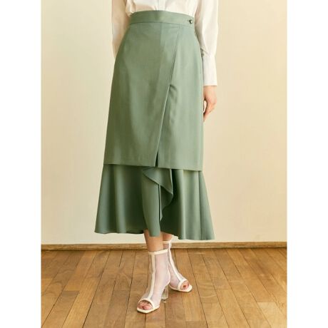 スリットからフリルがのぞくレイヤードデザインのマーメイドスカート。
