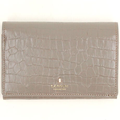 クロコの部分は、凹凸の落差が激しくない優しい雰囲気の型を使用しています。色味には控えめに陰影をつけているので、さりげなく透明感のある表情の革になっています。ゴールドのロゴブローチも特徴的です。[型番:065671310]ランバンコレクション LANVIN COLLECTION マルショウエンドウ