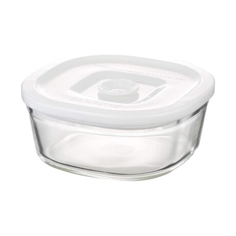 本体は耐熱ガラス製で酸や塩分に強く、安心してお使いいただけます。積み重ねができて、冷蔵庫などの狭い場所でも効率的に収納できます。