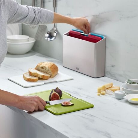 4. 肉、魚、野菜、調理済食材など、食材の種類で使い分けできる色違いのまな板。食材の交差汚染を防ぎ、衛生的に使えます。