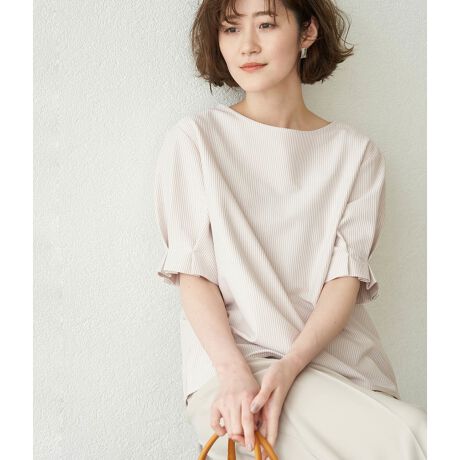 袖口タックサッカージャージトップス