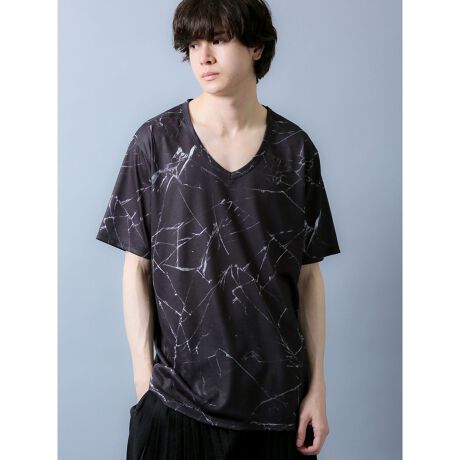 クラック柄 Vネック半袖Tシャツ