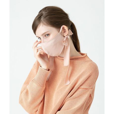 マスクもファッションを楽しむようにフェイスアクセサリーとして顔まわりを華やかに飾ります。内側には抗菌、防臭、ノーホルマリンのダブルガーゼを使用。手洗い可能です。表面はポリエステル100%のマットサテンを使用し、ノーアイロンでご利用頂けます。※手洗い可能です。