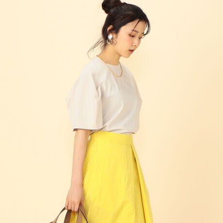 写真だけ見るとパリッとした生地のブラウスっぽいのを想像していましたがあくまでTシャツです。おしゃれな形のTシャツという感じです。