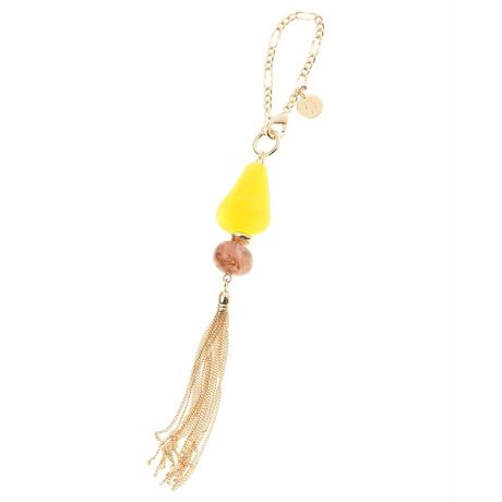 マットな質感の大きめアクリルビーズとチェーンフリンジを組み合わせたフェミニンなチャームです。