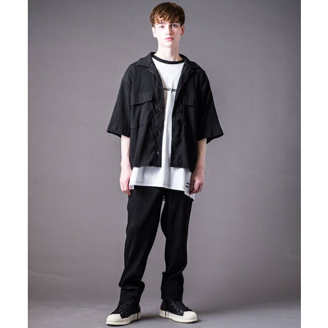 今シーズントレンドのビッグシャツとシェフパンツにバックステージパスの世界観をプラスした個性あふれるセットアップです。