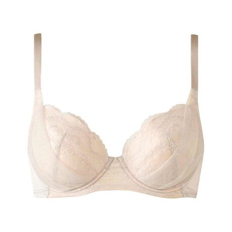 【とろけてバストになじむブラ−産後−】ワイヤータイプ・3/4カップ授乳前後のバストボリュームの変化に対応して、授乳期から卒乳期、さらに卒乳後も長くお使いいただける産後用ブラジャー。カップ上辺のシートが体温に反応してからだになじみます。バスト形状に沿いやすいため、バスト変化の大きい産後の胸にジャストフィットする産後ブラジャーです。・伸縮性のあるストラップと片手でめくれるカップで簡単に授乳ができます。・授乳前後のバストボリュームの変化(1カップ増量)に対応します。・パッド受け有り。パッド付き。・上部に厚みを持たせたピタッとパッド内蔵で、卒乳までのバストボリュームの変化に合わせて自然にボリュームアップし、きれいなバストラインをつくります。・産後ブラジャー用パッド(MKR526)の使用で、さらにバストボリュームの調整ができ、卒乳後のバストにも対応します。・カップをヌーディカラーにすることで、レースの透け感が際立ち、フェミニンモダンなデザインに仕上がっています。・カップ脇のチュールネットがバストをすっきりしたイメージに。